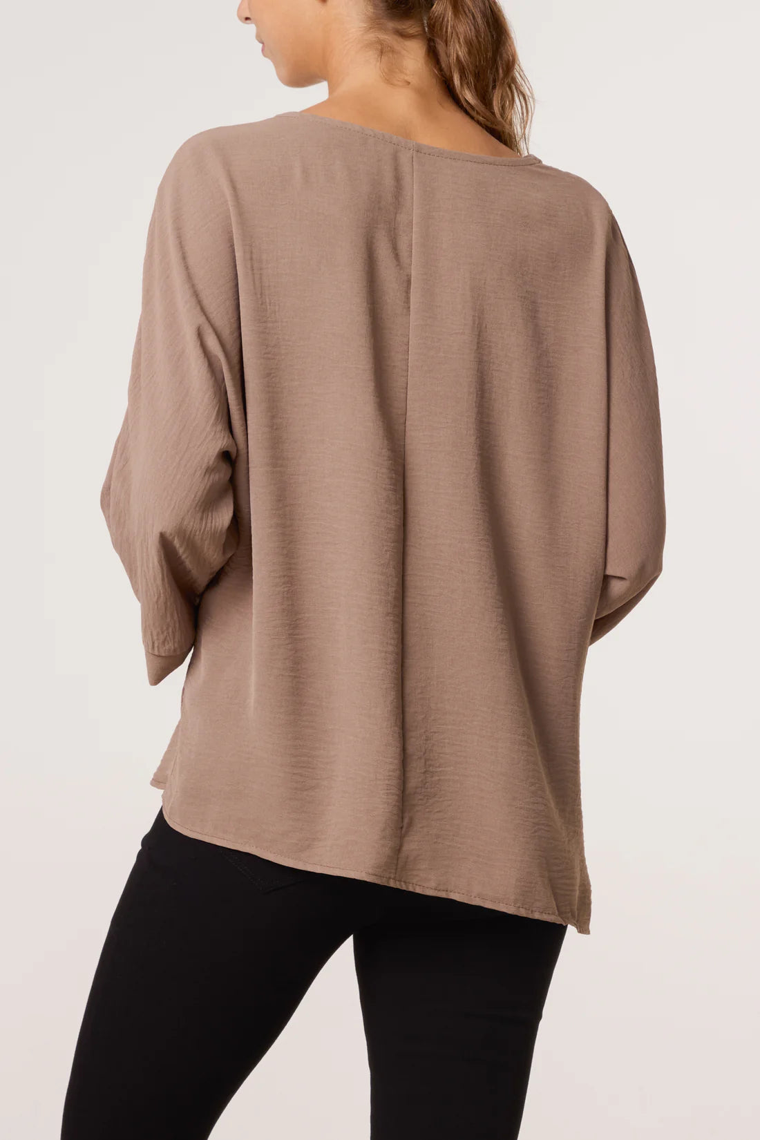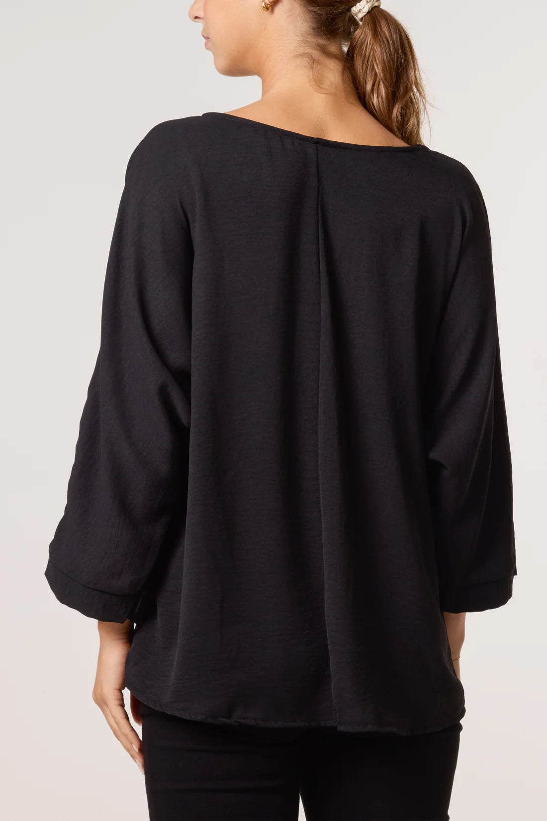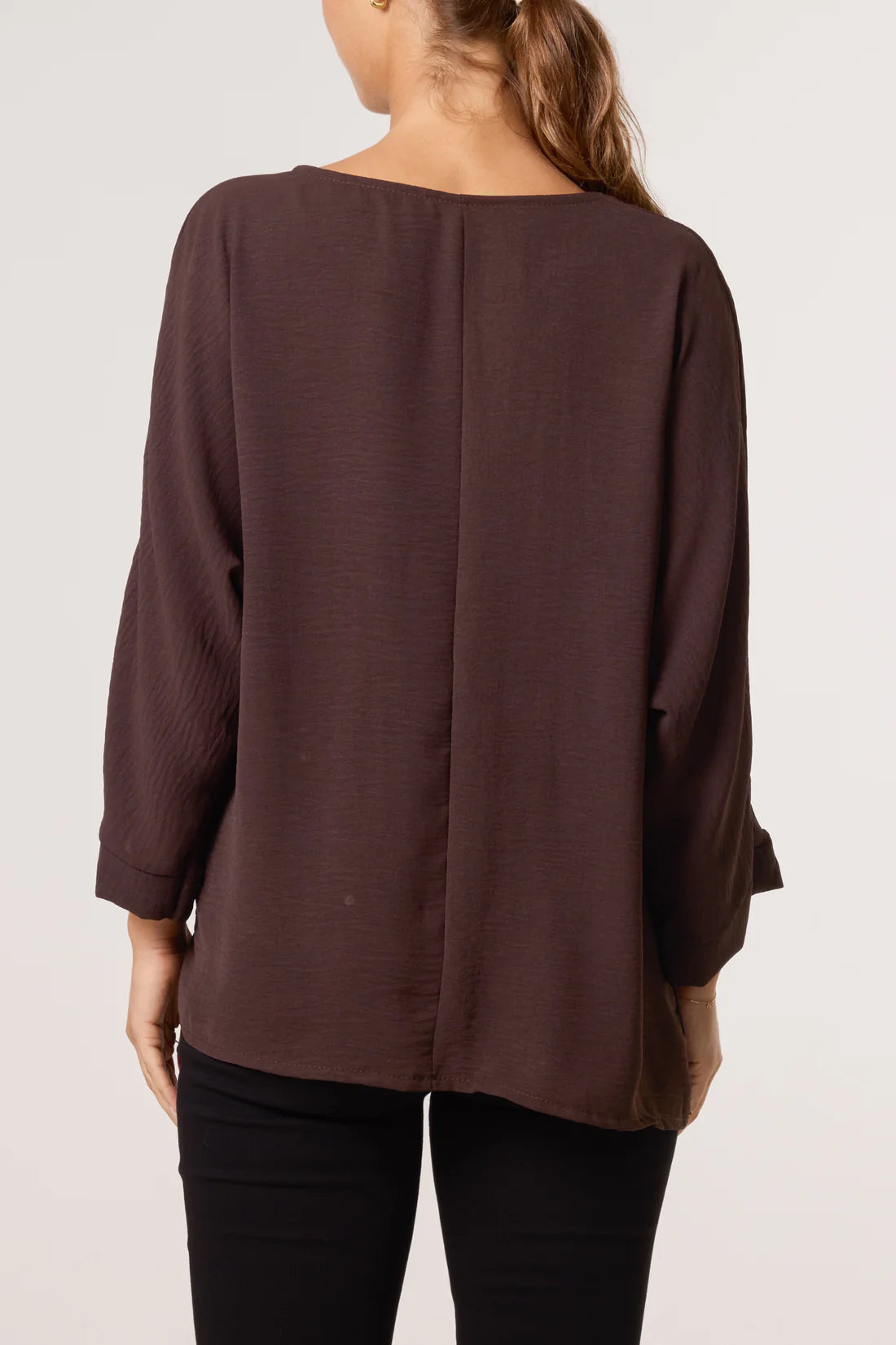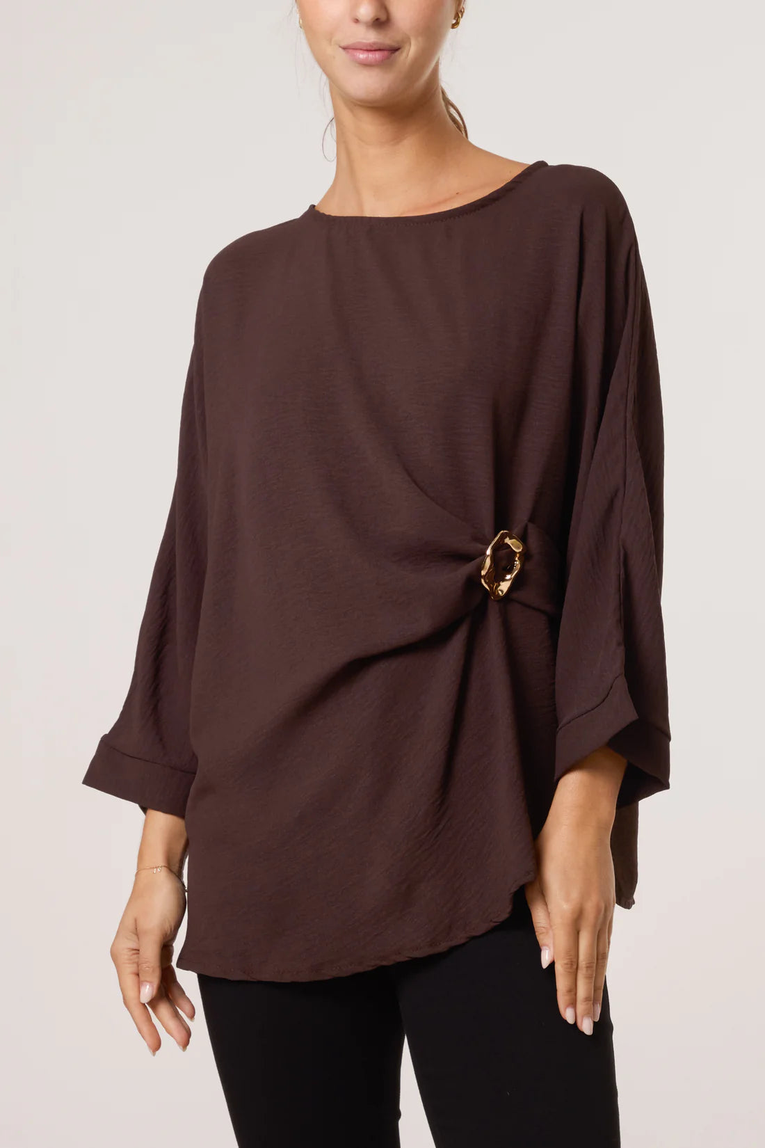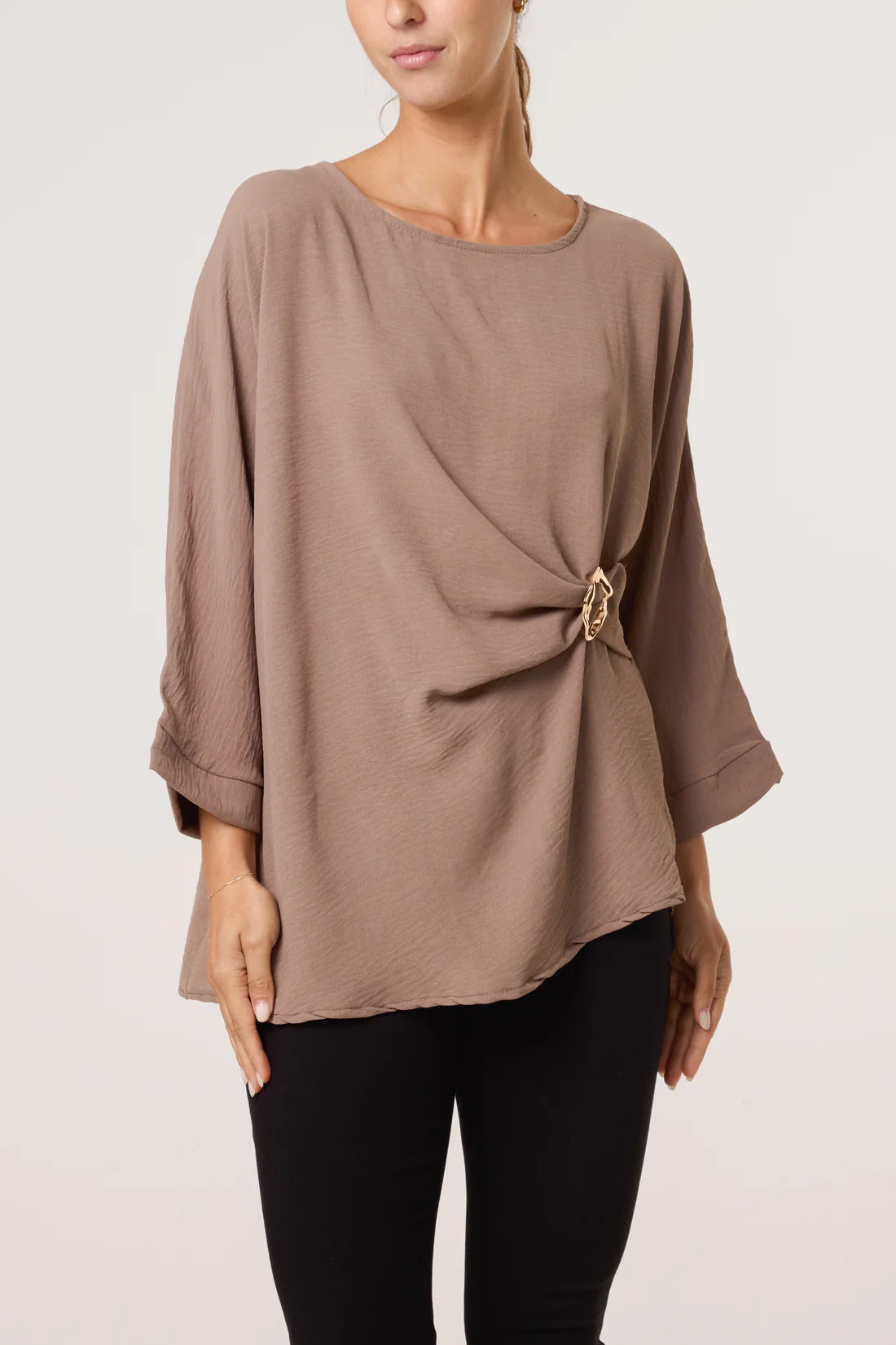 Long sleeve blouse with brooch detail to gather material