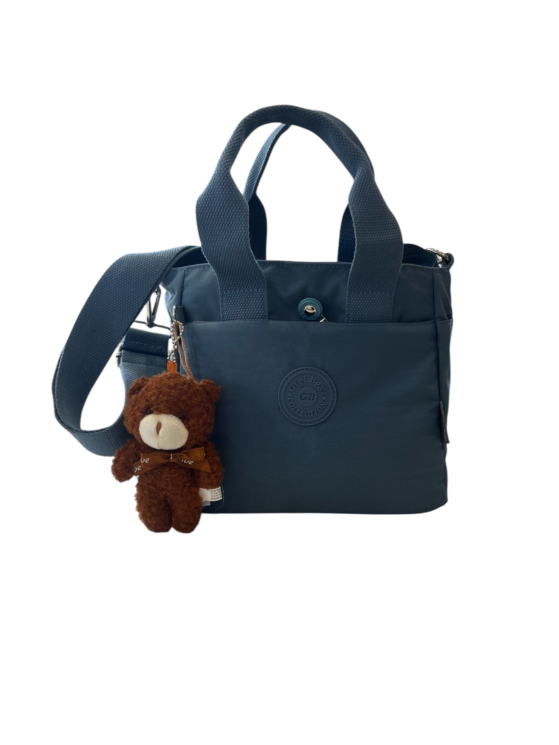 Cute little bag, has handle on o carry to use as crossbody with the detachable adjustable strap. Little teddy charm attached. Front zipper pocket pocket rear zip pocket then 1 main zipped pocket