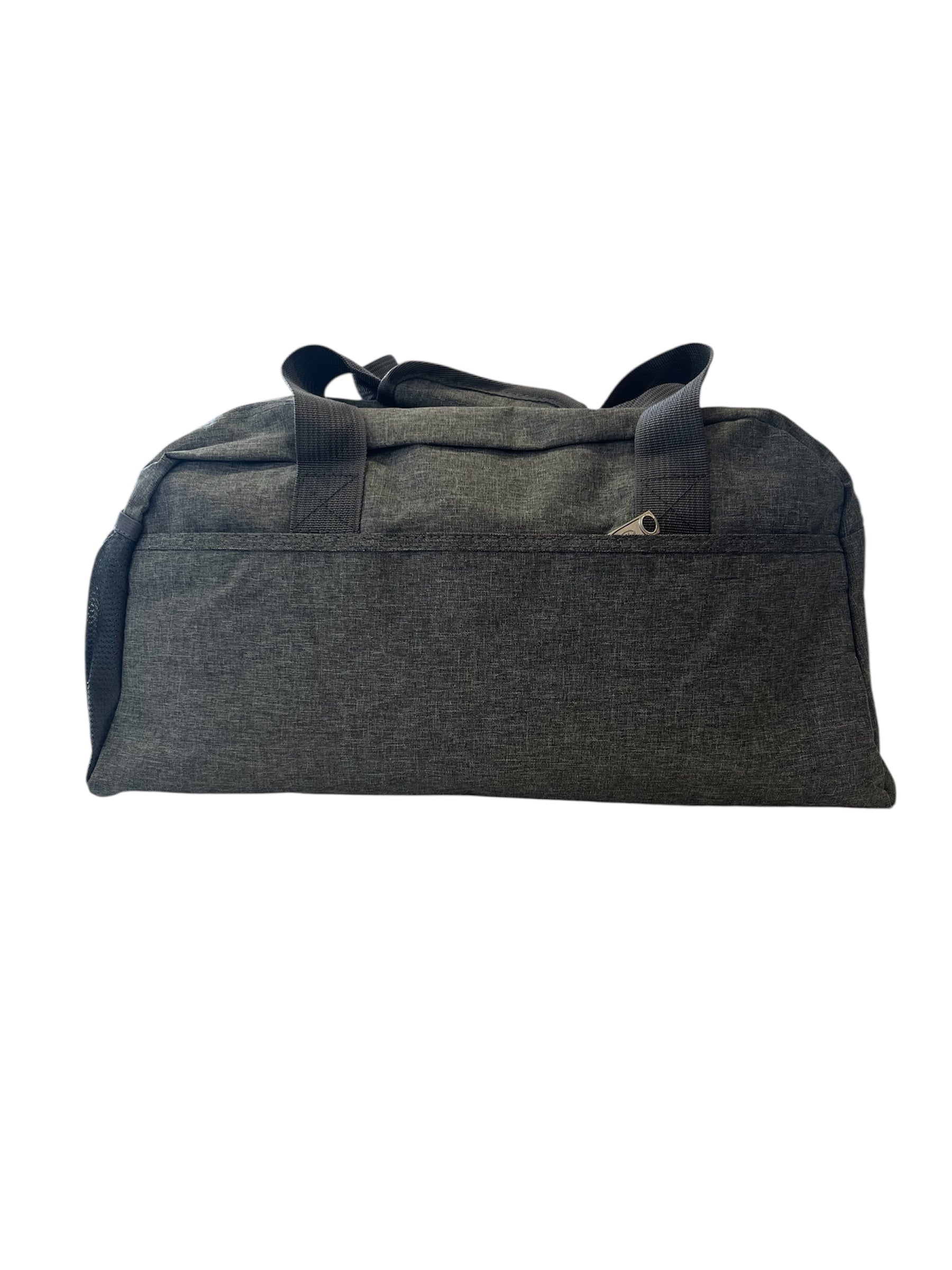 Great weekend bag, or gym bag! Big inside compartment short and long strap,side mesh pocket front zip pocket. Velcro handle opening