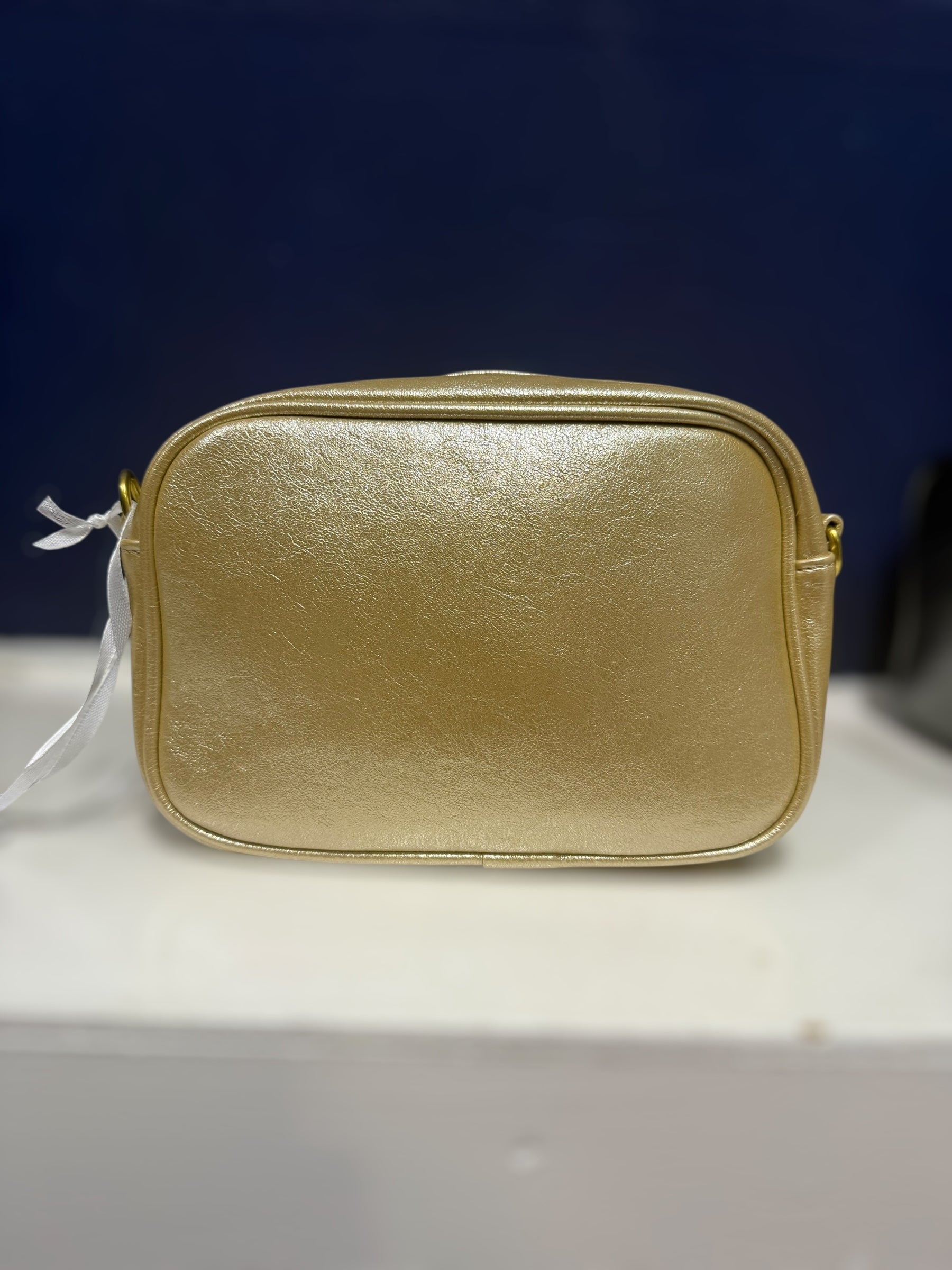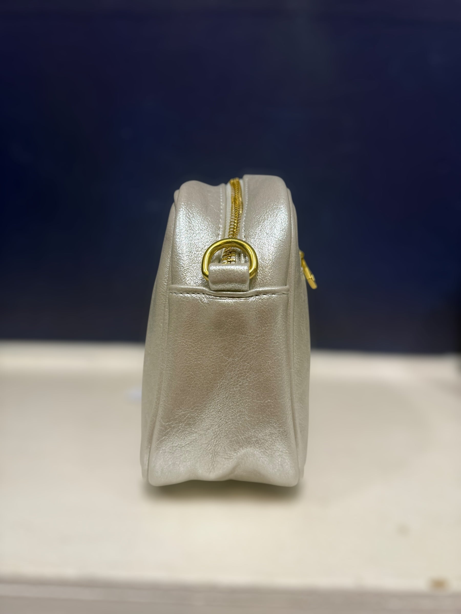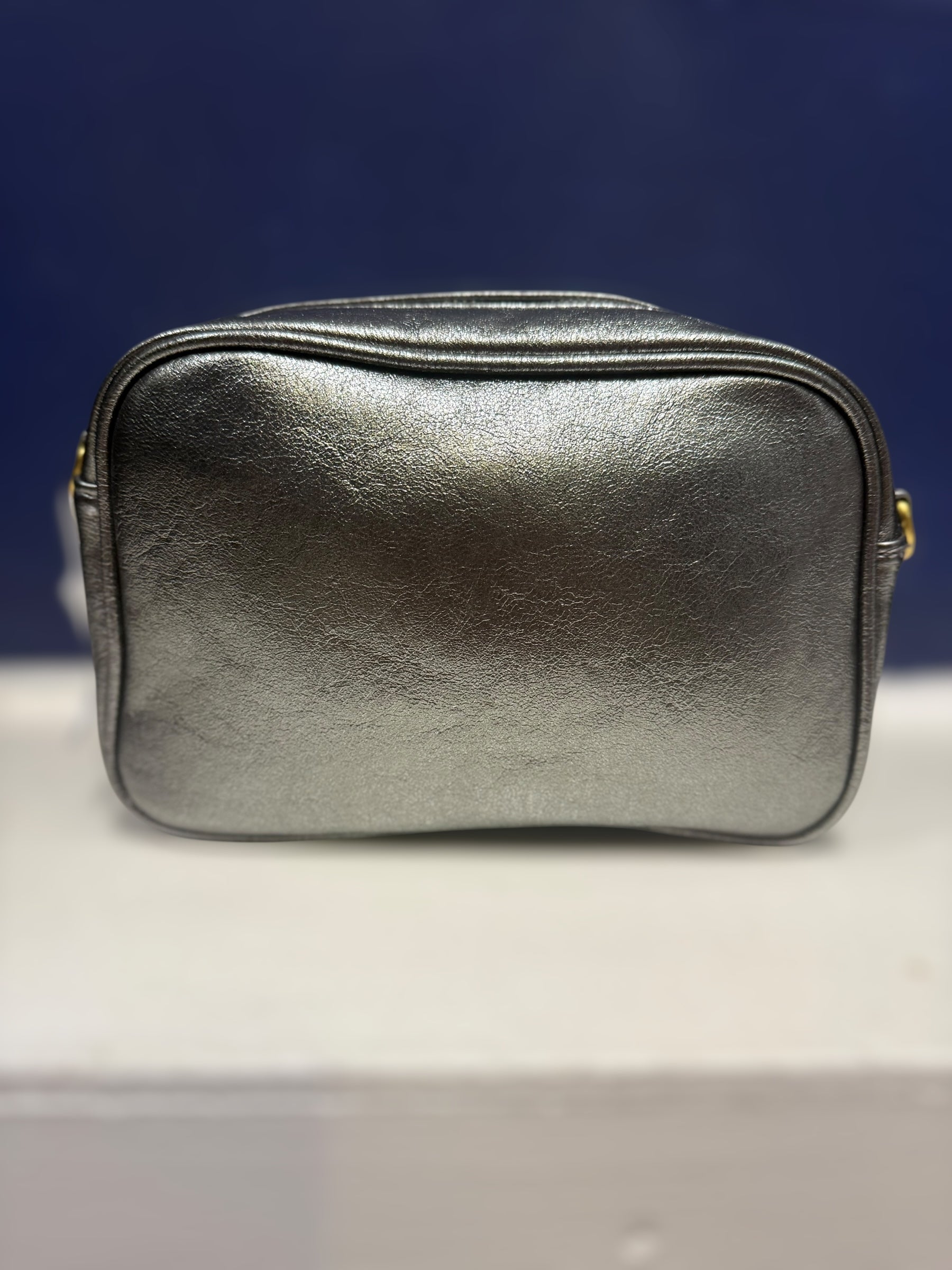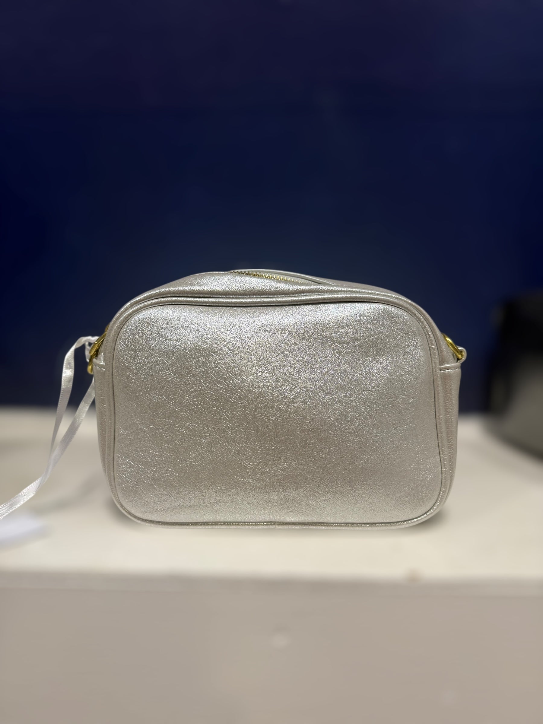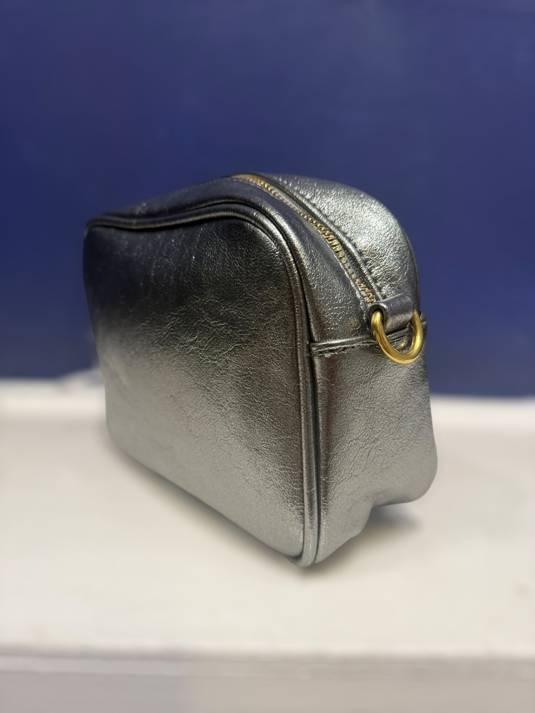 Beautiful metallic effect handbag with zip fastening removable strap that can be changed with the interchangeable straps - zip to main compartment and zip at the back pocket. Comes with a striped metallic strap