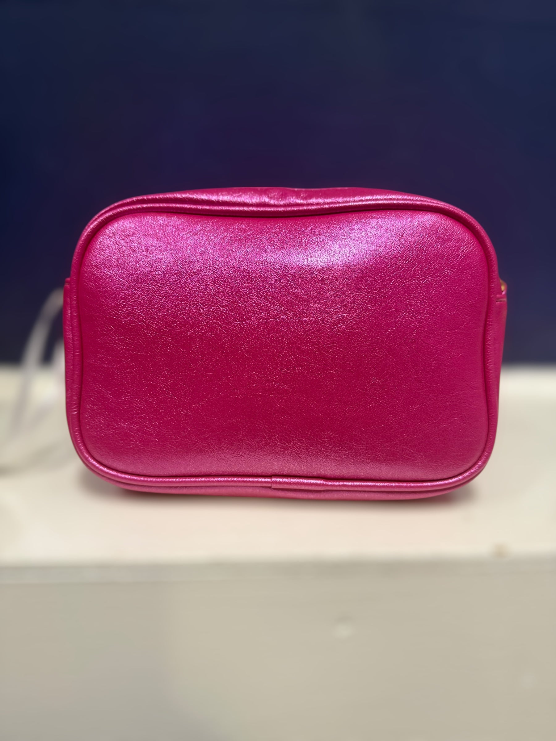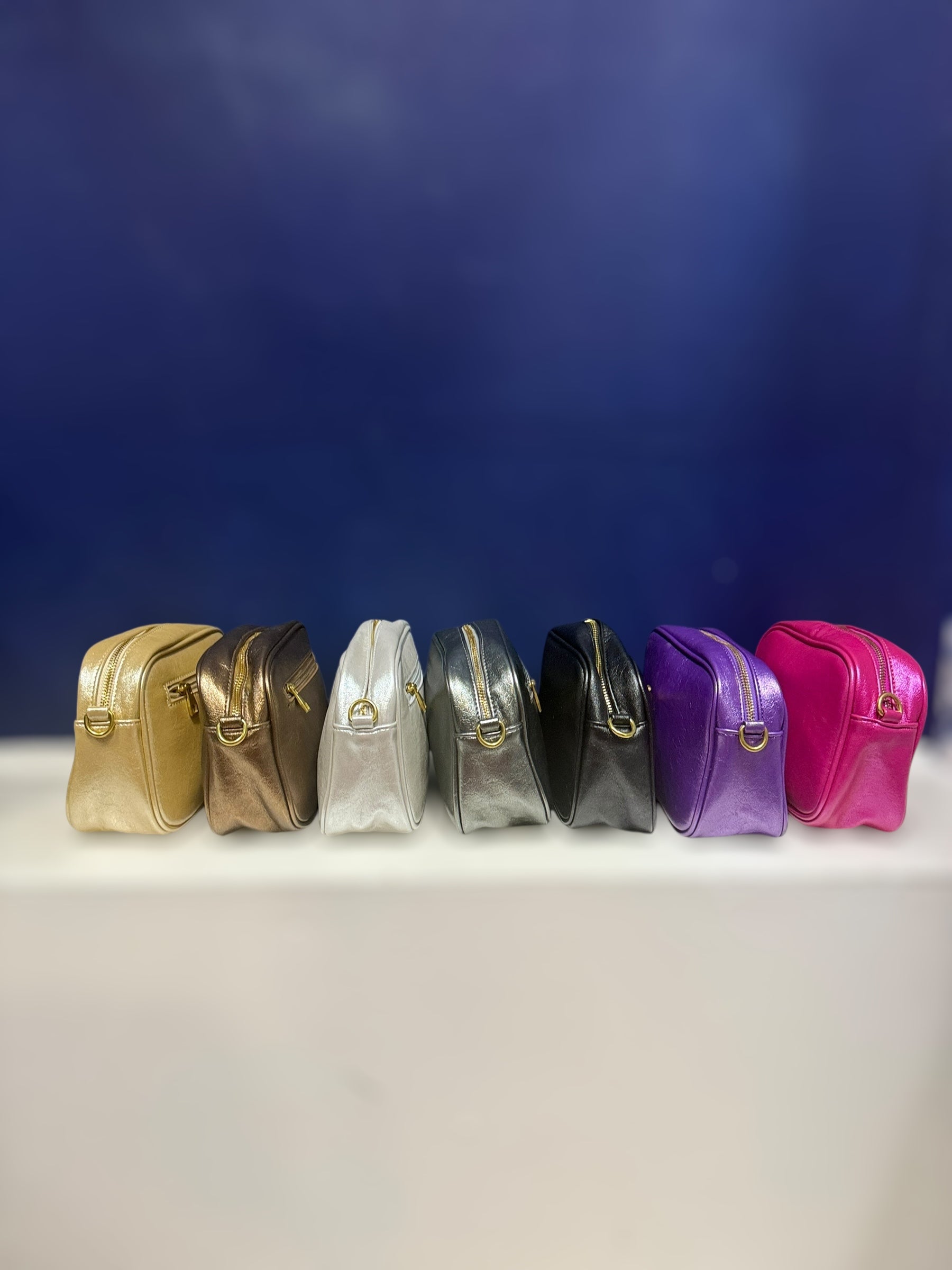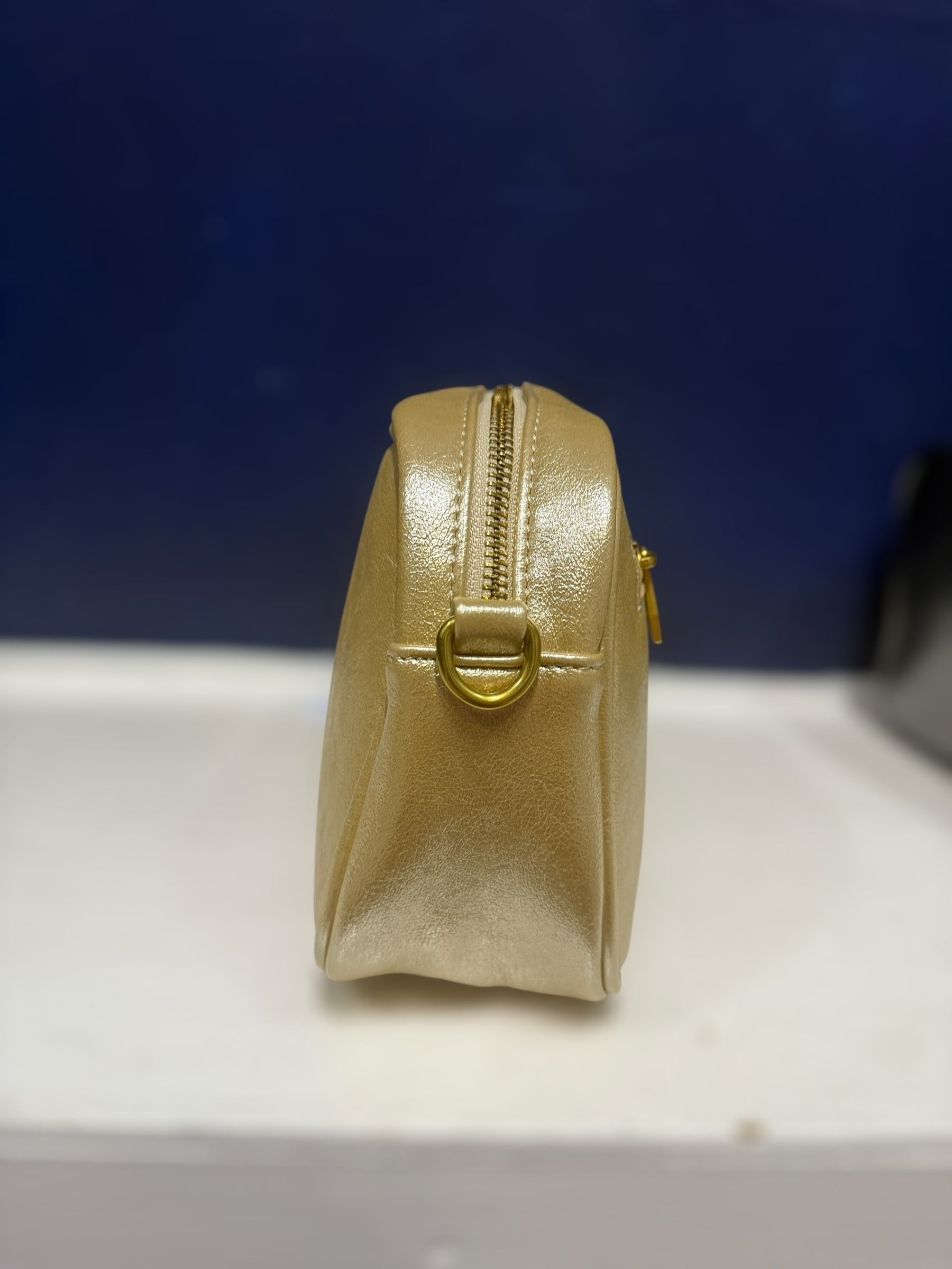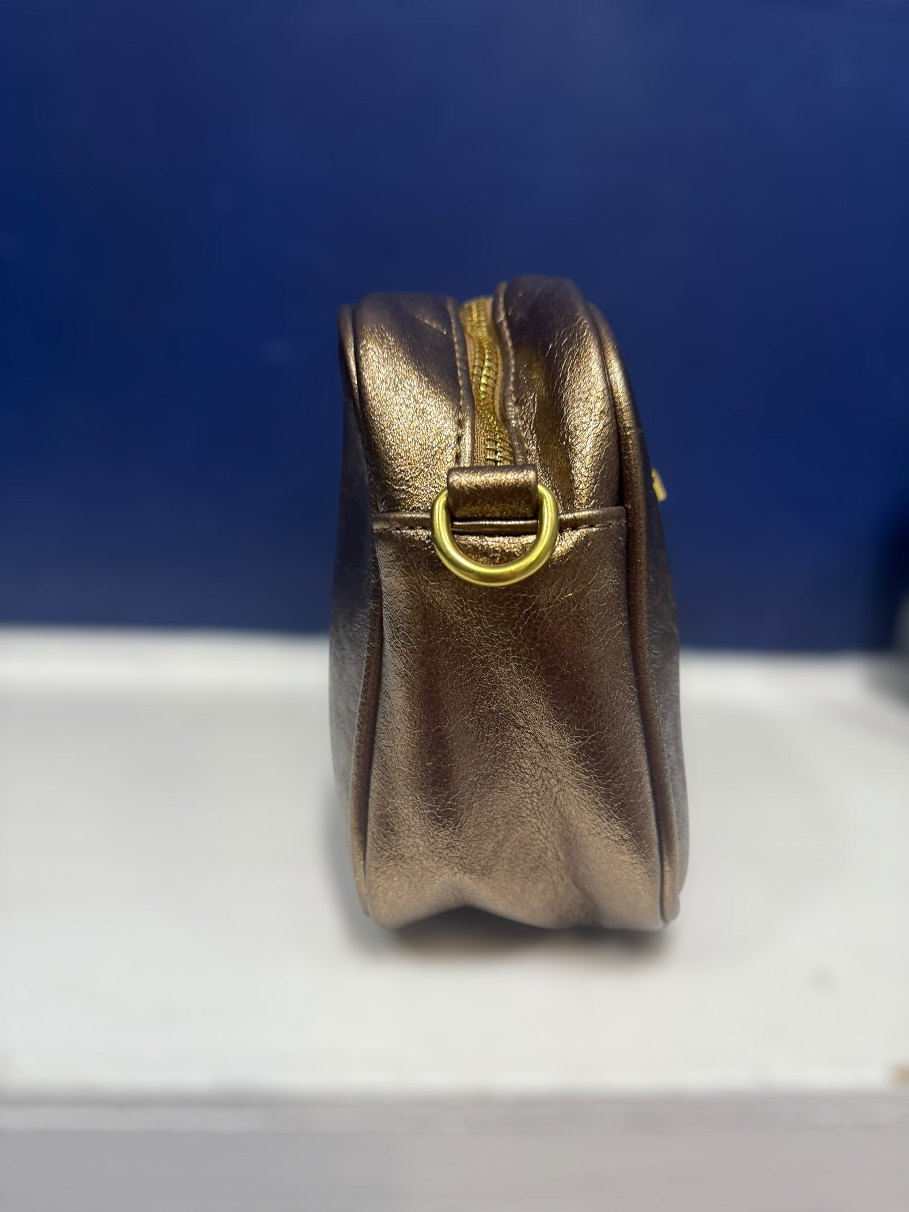 Beautiful metallic effect handbag with zip fastening removable strap that can be changed with the interchangeable straps - zip to main compartment and zip at the back pocket. Comes with a striped metallic strap