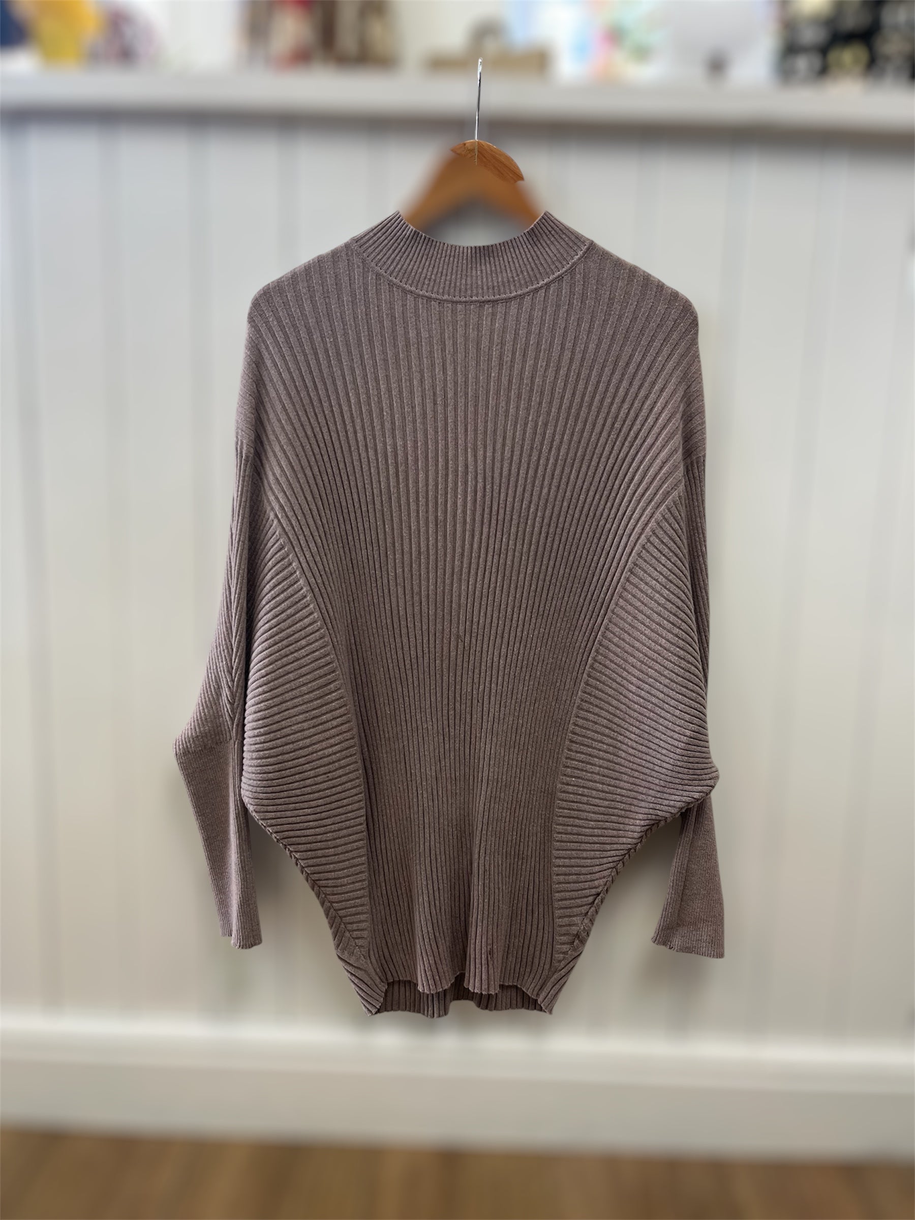 Ribbed batwing style jumper, highneck fitted tight to the arms